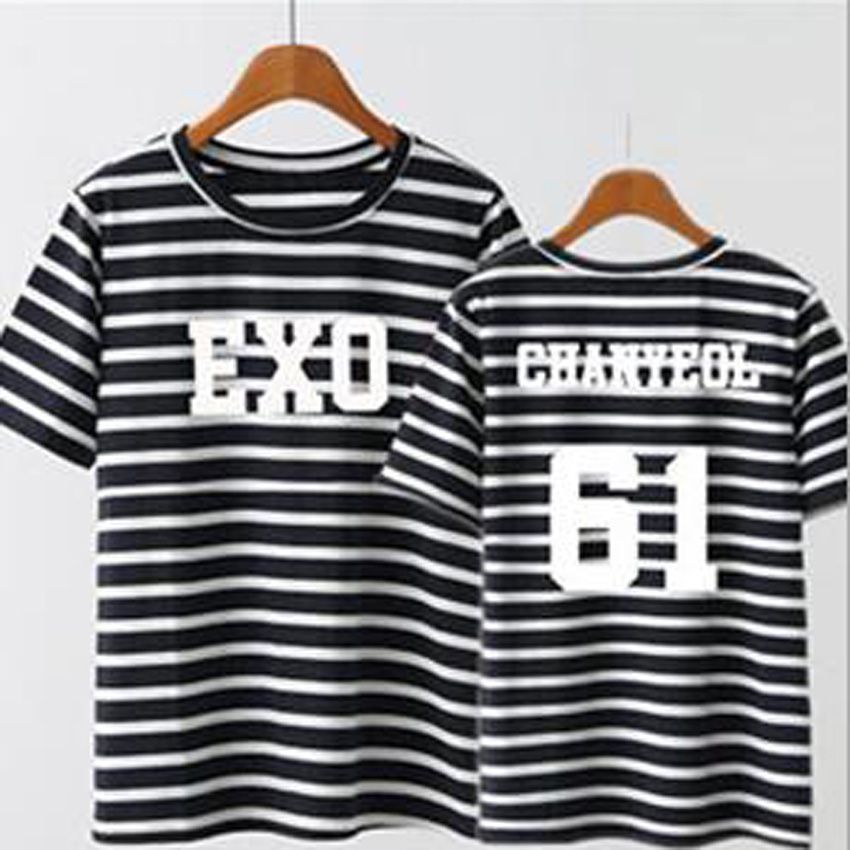 K Pop Exo Baekhyuk Chanyeol Sehun Xiumin Chen Stripe T Shirt Women