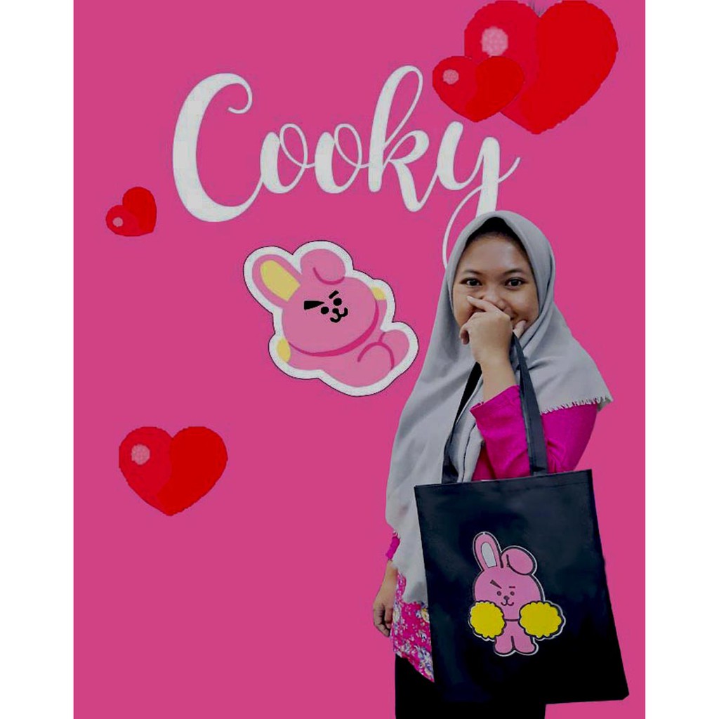 Tas Bt21 Tote Bag Cooky Bunny Kelinci Pink Bts K Pop Boy Korea